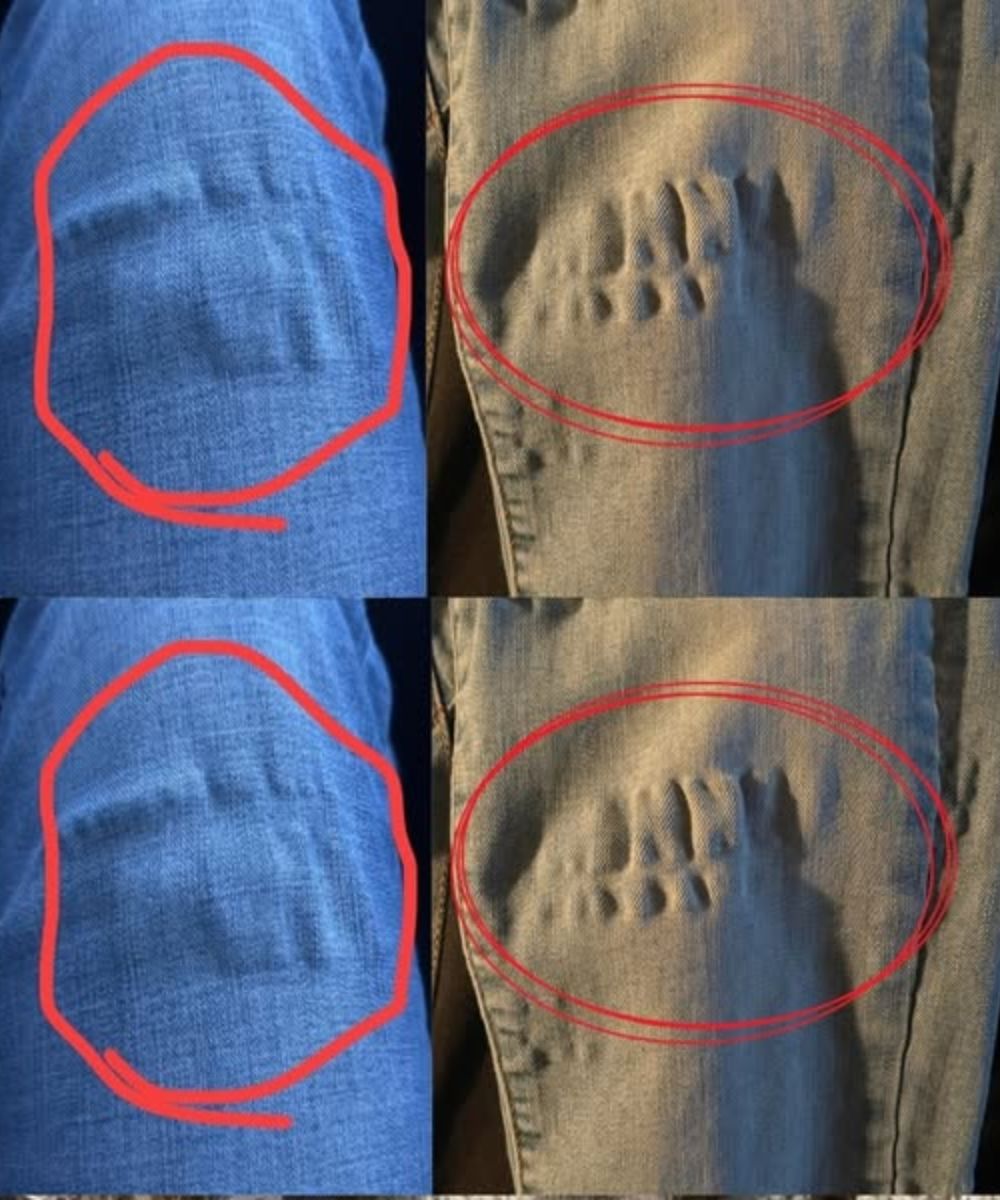 Billigere Jeans oder Jeans, bei denen weniger Wert auf die Verarbeitung gelegt wurde, können anfälliger für dieses Problem sein. Aber auch teure Jeans können Falten bekommen, wenn sie aus Stretch-Denim bestehen oder unregelmäßige Nähte haben.