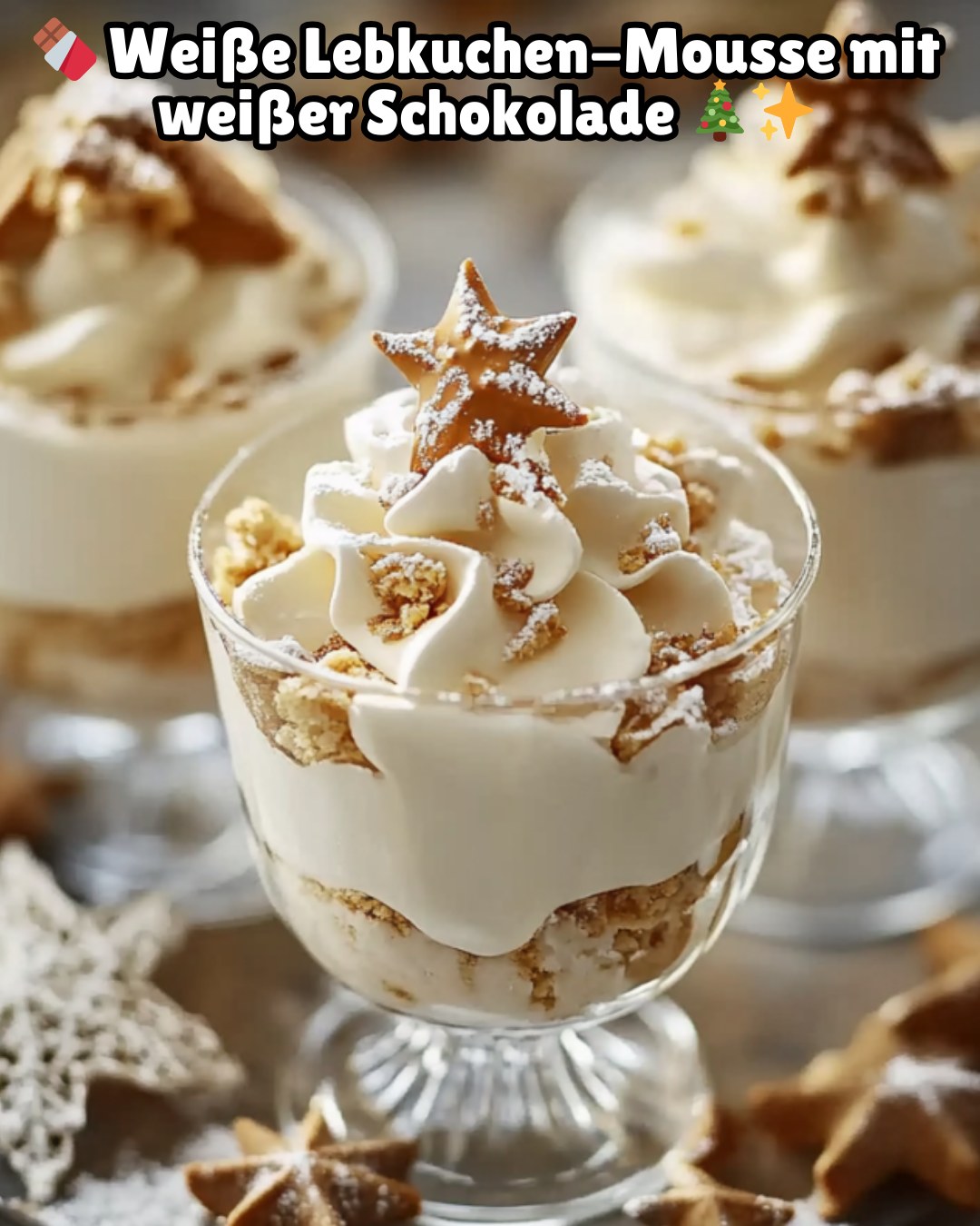 Kurzbeschreibung: Cremige Mousse mit weißer Schokolade und Lebkuchen – das perfekte Dessert für Weihnachten!