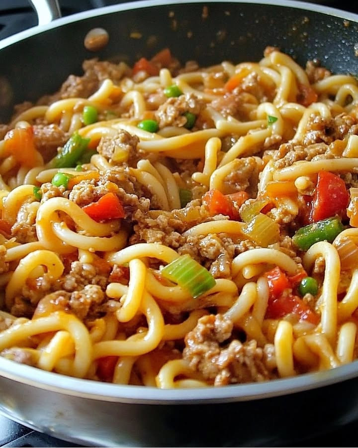 Würzige Hackfleisch-Gabelspaghetti-Pfanne