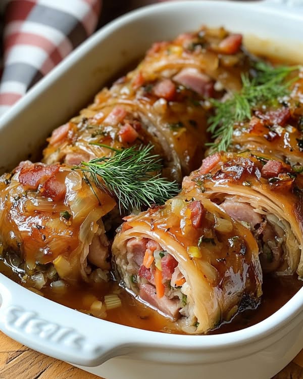 Saftige Fleischröllchen werden mit einer würzigen Mischung aus Sauerkraut und Speck gefüllt und langsam geschmort. Perfektes Comfort Food.