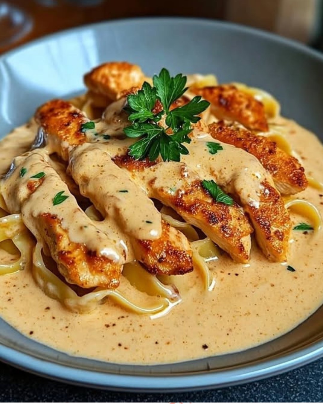 Dieses Rezept vereint zart gebratenes Hähnchen mit cremigen Nudeln in einer köstlichen, sahnigen Sauce – perfekt für ein schnelles Abendessen oder ein gemütliches Familienessen. Die italienischen Kräuter und der geschmolzene Parmesan verleihen dem Gericht eine feine Würze und herrlich aromatische Tiefe.