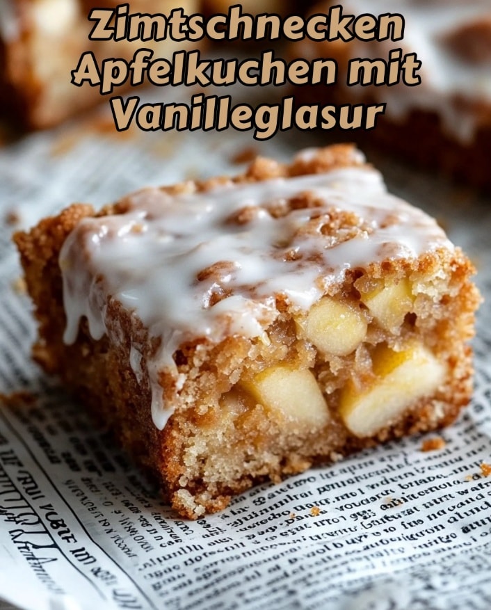 Saftiger Apfelkuchen mit Zimt und Vanilleglasur – perfekt für herbstliche Nachmittage und schnelle Zubereitung.
