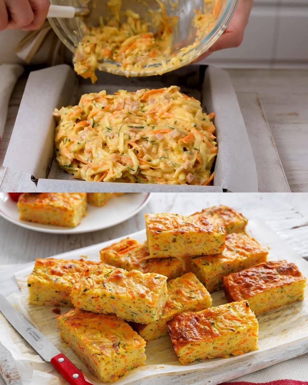 Dieses herzhafte Stück ist die perfekte Kombination aus Zucchini, Karotte, Käse und Speck, zusammen mit Eiern und Mehl, für einen köstlichen, sättigenden Snack oder eine sättigende Mahlzeit. Es ist einfach zuzubereiten und zu backen und eignet sich daher ideal für einen schnellen Brunch, die Schulbrotdose oder sogar das Mittagessen im Büro. Der leckere Käse und der Speck sorgen für Geschmack, während Zucchini und Karotte für einen Nährstoffschub sorgen. Ob warm oder kalt serviert, dieses Stück ist vielseitig und bei allen beliebt.